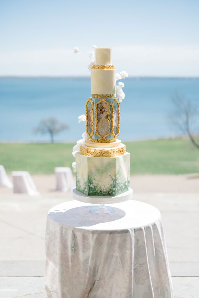The cake by Hanami Cake Design was thoughtfully scaled to the room. Its detailing echoed the artistry above us without overpowering the space. It felt aligned, not ornamental.